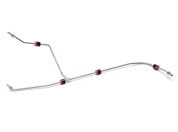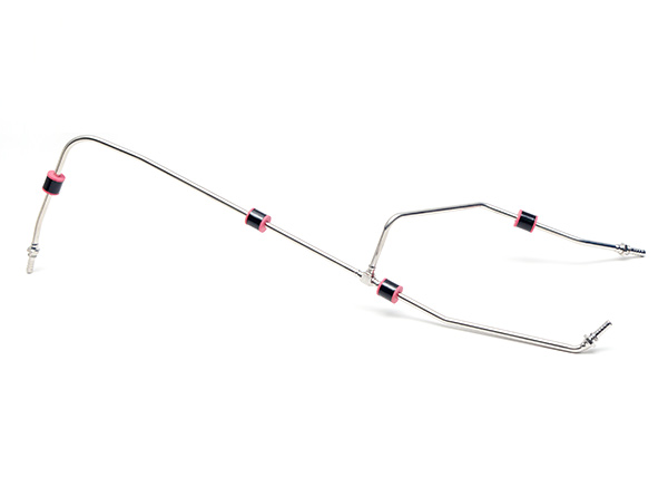 航空發動機平面密封管路件根據客戶的要求設計生產,將多根不銹鋼管進行多角度折彎,并與多個金屬接頭焊接而成,每處焊縫經過嚴格檢測,確保無焊接缺陷,使用壽命長。